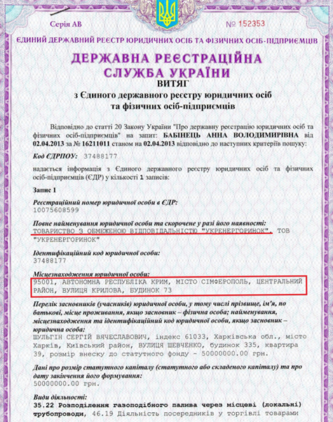 В этом же «презентабельный» офисе в Симферополе на улице на Крылова, 73 из других фирм прописана еще одна компания-миллиардер — ООО «Укрэнергорынок».