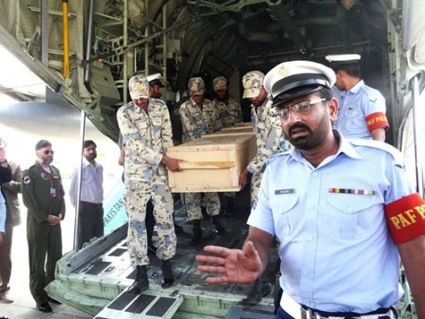 Доставка тел погибших альпинистов из места трагедии на авиационную базу в город Gilgit.