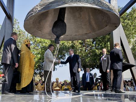 В воскресенье, 28 июля, у Владимирского собора на территории заповедника «Херсонес Таврический» в Севастополе митрополит Симферопольский и Крымский Лазарь совершил чин освящения удивительного колокола «Крещенский», отлитого литейщиками ПрАО «Донецксталь» - МЗ» к 1025-летию Крещения Руси. А первыми ударили в него президенты Украины и России - Виктор Янукович и Владимир Путин.