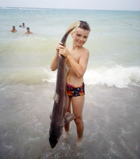 По свидетельству очевидцев, выброшенную на берег акулу тут же "приватизировали" двое местных жителей, которые тстали требьовать за фото по 10 гривен с человека. Недорого и вполне доступно, поэтому из желающих сфотографироваться с акулой, которая к тому же была беременна, выстроилась целая очередь, - сообщает издание "Вгороде. Крым".