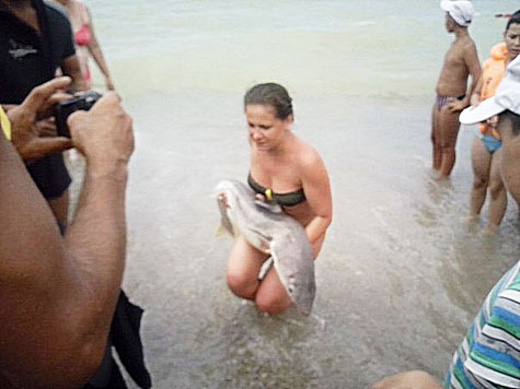 "Минут 40 длилась фотосессия. За это время катран погиб, - сообщает один из очевидцев.- "Местные" парни не соизволили даже бедное животное в воду хоть раз окунуть, чтоб она подышала. Вот так, на ровном месте, нажили денег, и еще к тому же ее унесли с собой. Я думаю, для того, чтобы скушать дома, а то лучше - приготовить и продавать...
