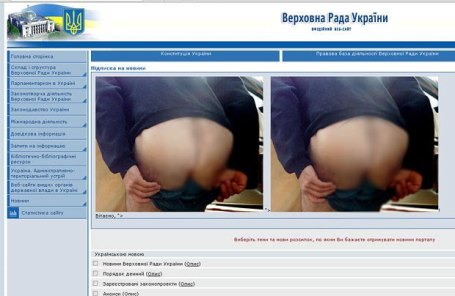 Але це вдалось якимось невідомим особам. Після авторизації за логіном та паролем qazwsx, вам відкриється сторінка порталу з фотографіями оголених чоловічих сідниць та надписом «вітаємо».