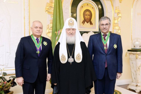 Патриарх РПЦ Кирилл наградил орденами телеведущего и гендиректора российского информагентства "Россия сегодня" Дмитрия Киселева, а также гендиректора ВГТРК Олега Добродеева. Об этом сообщает пресс-служба церкви.