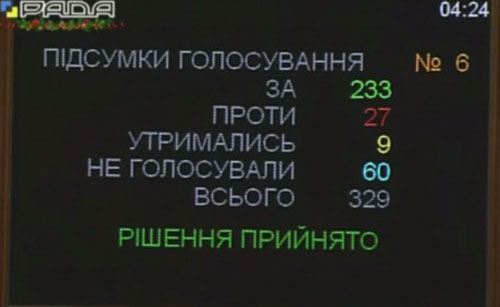 И наконец-то!!! В 5-м часу утра законопроект № 1000 был поставлен на голосование и одобрен 233 депутатами. Проект представлял все тот же Арсений Яценюк.