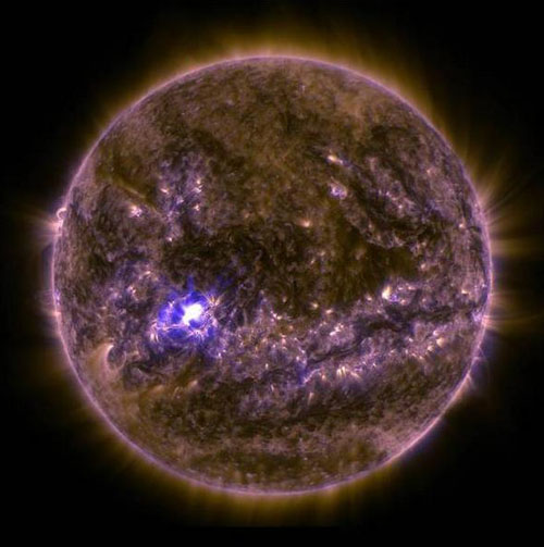 "Солнце выполнило свою первую в году сверхмощную вспышку вечером в среду, 11 марта, направленную в сторону Земли. Ужасные солнечные выбросы ВС класса, самого сильного из всех возможных солнечных штормов, происходит от активной области группы пятен AR2297, расположенных около центра солнечного диска... Область AR12297 уже отличилась рядом вспышек средней силы в течение последних нескольких дней, что на пике интенсивности привело к часовому отключению связи в некоторых районах США", - отмечает космическое агентство.