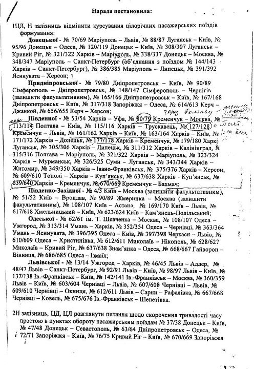 В распоряжении "Фактов недели" оказалась ксерокопия полного списка подлежащих отмене поездов. Это не список, а катастрофа: