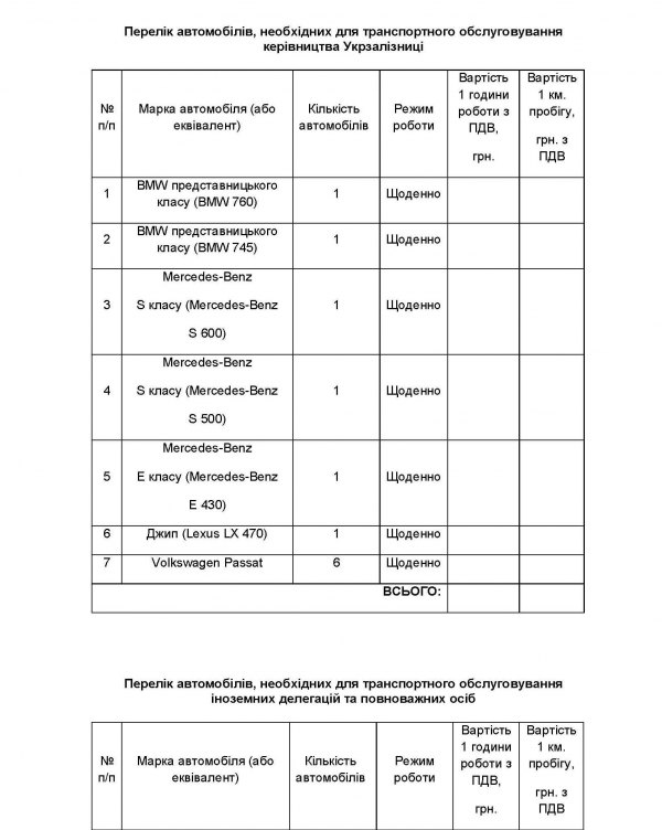 На каком такси ежедневно катается руководство "Укрзализныцi", видно ниже из таблицы. В заголовке это звучит как необходимость. Эти две таблицы - из протокола заседания комитета конкурсных торгов "Укрзализныцi". Итак...