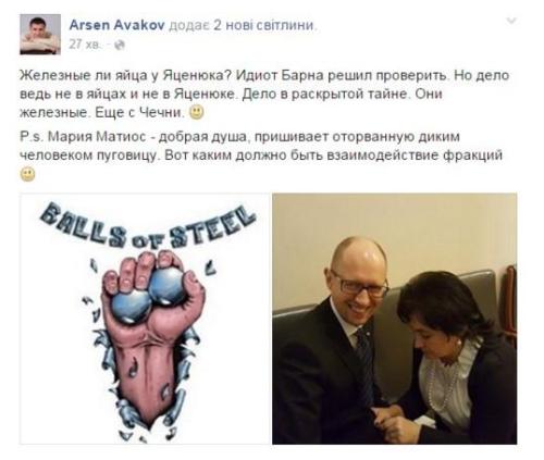 Похоже, что чувство меры и приличий стало изменять не только украинским парламентарям, устроившим сегодня, 11 декабря, драку в Верховной Раде, но и министру МВД Арсену Авакову, который опубликовал у себя в Facebook, мягко говоря, неприличный комментарий к событию.