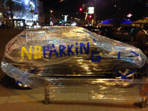 Отдельного внимания заслуживает украшение в виде надписи «NO PARKING», исполненной в цветах национального флага Украины.
