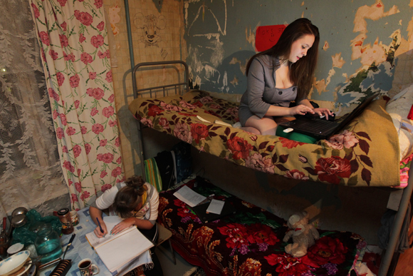 Сама Света живет в общаге на окраине Иваново. Угловая комнатка с четырьмя железными койками. Стены ободраны, обоев нет. Возле двери — порядком полинявший портрет Анджелины Джоли, над кроватью плакатик «Кокс это я!» и смайлик.