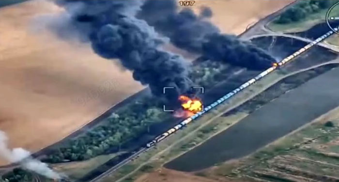 Сили оборони України уразили щонайменше 11 цистерн з паливом для фронту. Також повідомляється про руйнацію колії, якою забезпечувалися російські військові.