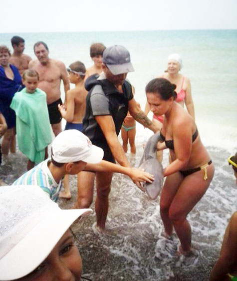 Сегодня, 31 июля, в поселке Николаевка Симферопольского района на пляж была выброшена беременная черноморская акула-катран. В итоге, ее насмерть замучили отдыхающие с фотоаппаратами.