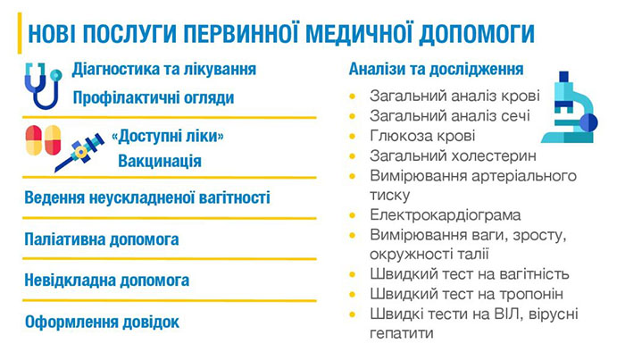 Министерство здравоохранения Украины обнародовало перечень услуг первичной медицинской помощи, которые являются бесплатными.