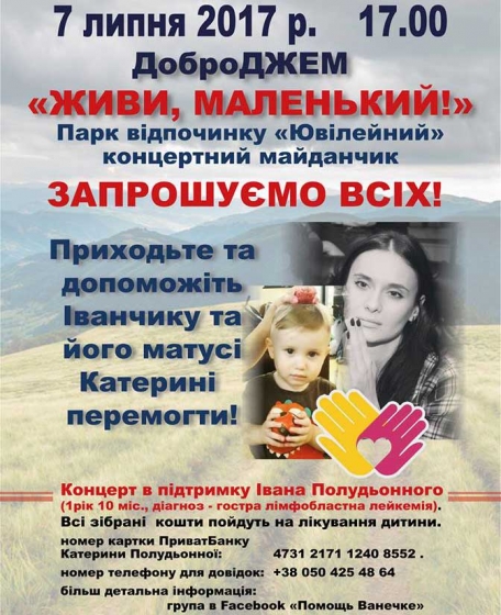 7 июля в парке “Юбилейный” пройдут благотворительная ярмарка и программа в помощь больному лейкозом маленькому краматорчанину Ване Полуденному.