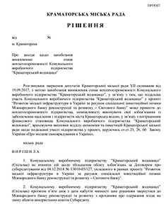 В частности, проектом решения предлагалось Коммунальному производственному предприятию “Краматорский водоканал” "не совершать действий относительно увеличения объема обязательств по Договору о субкредитовании от 04.12.2014 № 13010-05/127, заключенного в рамках проекта “Развитие городской инфраструктуры в Украине за счет специальной инвестиционной ссуды Международного банка реконструкции и развития – Мирового банка”. Кроме того, дирекция водоканала должна была "обратиться к Международному банку реконструкции и развития с просьбой о получении согласия на смену объемов использования средств Субкредита".