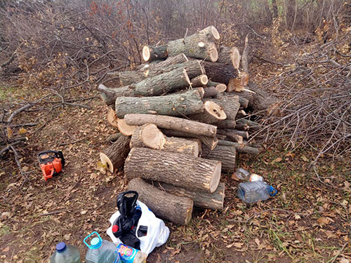В дежурную часть Краматорского отдела полиции обратился местный фермер с сообщением о том, что неизвестные осуществляют незаконную вырубку деревьев в лесополосе между Краматорском и Славянском.