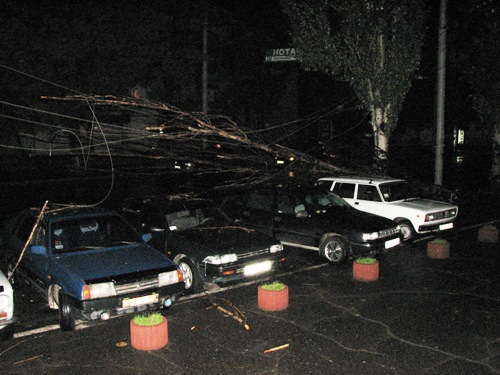Из-за ветра упали сразу два тополя в самом центре Краматорска, в районе гостиницы «Краматорск», в связи с чем временно было прервано движение электротранспорта. Одно из деревьев угодило на припаркованные автомобили.