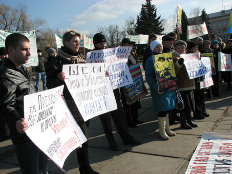 Митинг в Краматорске вел депутат горсовета Краматорска от "Фронта змiн" Владимир Ржавский. Перед гражданами выступали депутаты горсовета от "Батькивщины" Наталья Возович и прогрессивная социалистка Галина Смаглий. В толпе активно раздавали печатную продукцию партии "Свобода". А вот Партия регионов продолжает хранить молчание.