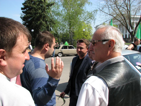 С участниками автопробега пообщался начальник Краматорского ГО УМВД Сергей Забор (в центре). Нарушений не выявлено.