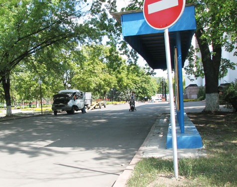 Как известно, проезд автотранспорта по этому участку закрыт знаком-"кирпичом", однако на запрет откровенно плюют все кому не лень: начиная от посетителей секций Дворца и кончая лихими таксистами, для которых в городе вообще нет ни знаков, ни преград. Вот уж где, пожалуй, было бы разгуляться ГАИ, однако блюстители дорожного порядка здесь не появляются никогда (наверное, опасаются посетителей расположенного в здании штаба Партии регионов?..)