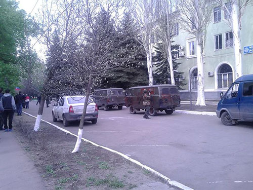 Сразу после митинга, поступила информация о том, что в город прибыли несколько вооруженных групп неизвестных людей, которые, при поддержке пророссийских активистов, взяли под контроль горотдел милиции, здание исполкома горсовета и СБУ.