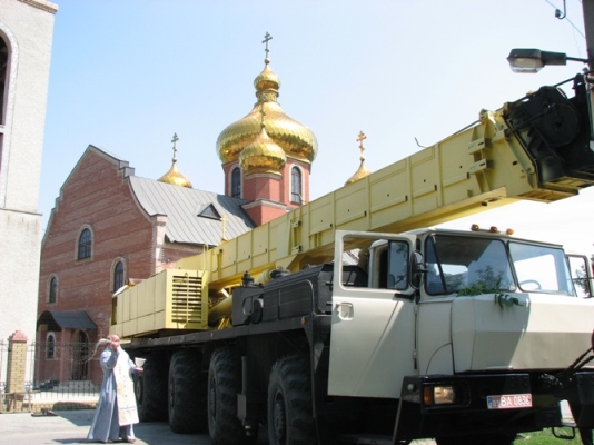 Как теперь быть - пока не ясно. По словам настоятеля, он теперь планирует обратиться за краном с подходящей стрелой в Донецк. А не выйдет там - придется храму нанимать... вертолет.