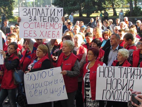 Опубликованные на днях новые тарифы на тепло и горячее водоснабжение ООО «Краматорсктеплоэнерго» (ТЭЦ), согласно которым отопление будет стоить 27,9 грн. за квадратный метр жилья вызвали волну возмущения среди горожан. Сегодня, 18 сентября, у здания краматорского исполкома состоялась акция протеста против необоснованно завышенных тарифов на тепло и горячее водоснабжение.