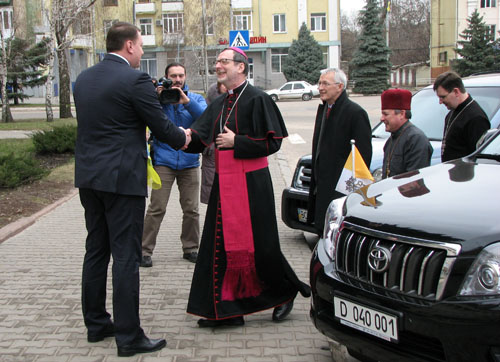 Представителя Папы Римского встретил мэр Краматорска Андрей Панков и его заместители.