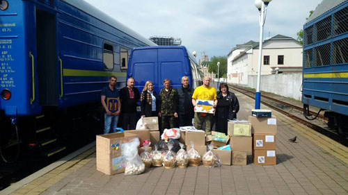 Сейчас агитпоезд до отказа загружается в Киеве Пасхальными подарками для детей в зоне АТО и военнослужащих.