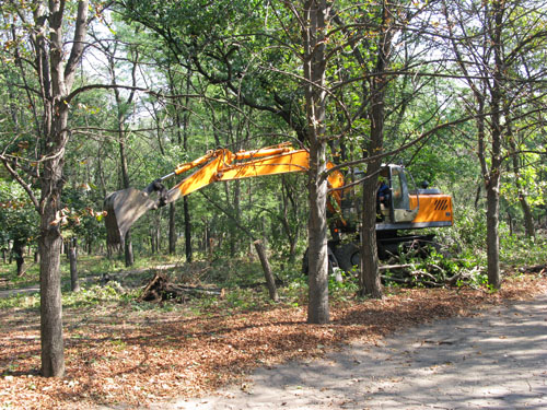 Далее - выкорчевка пней и подготовка почвы к будущей высадке молодых деревьев в следующем году.