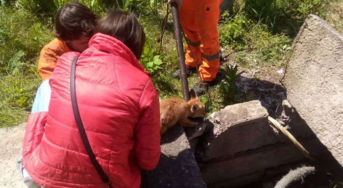 На месте происшествия научные сотрудники парка обнаружили молодую лису, которая упала в кабельный колодец и запуталась в креплении.