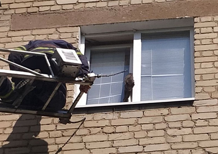Как сообщает пресс-служба ГСЧС Украины в Донецкой области, днем 2 июля на телефон Службы спасения «101» поступило сообщение о том, что на 4-м этаже дома в Бахмуте в металлопластиковом окне застряла кошка.