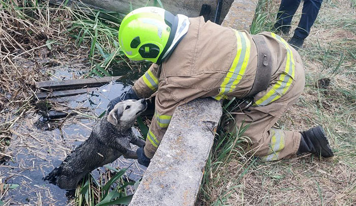 «Вчора до Служби порятунку від небайдужих мешканців міста Лиман надійшло повідомлення про те, що 2 собаки на околицях міста впали в покинуту водойму очисних споруд та не могли самотужки вибратись. По прибутті до місця події рятувальники за допомогою мотузки власними зусиллями дістали пухнастих на суху поверхню»,— йдеться у звіті рятувальників.