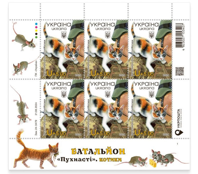 "Поштовий випуск Батальйон "Пухнасті" – благодійний. Виручені кошти будуть спрямовані "Укрпоштою" на допомогу притулкам для тварин", - повідомили в компанії.