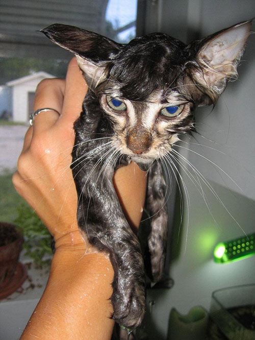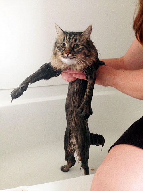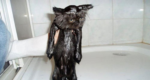Однако в доме лучше держать чистого кота, потому что он любит спать с тобой в одной кровати, любит когда его гладят, поэтому … Что делать если кота надо искупать?! Надо запастись терпением и мужеством, а так же приготовится, что Ваш любимец превратится в дикого питомца, который будет вырываться и зверски орать: МЯУУУУУ. Здесь собрано несколько забавных фотографий с мокрыми котами, надеюсь, вам понравится!