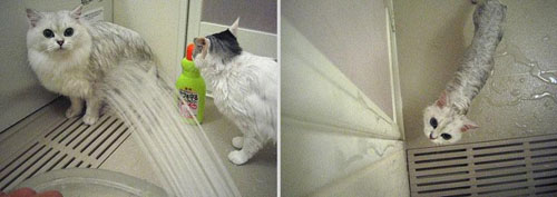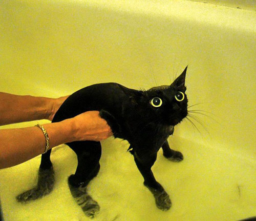 Если судить по моему коту, то он начинает боятся всей этой процедуры как только я его заношу в ванну, он упирается, его глаза расширяются от страха и он начинает зверски орать, вырываясь при этом. Лучше этой процедуры избегать и доверится Вашему питомцу, однако ведь бывают исключения, бывает когда его просто необходимо искупать, тогда наберитесь терпения и вперед!