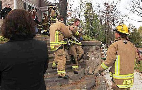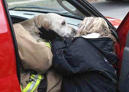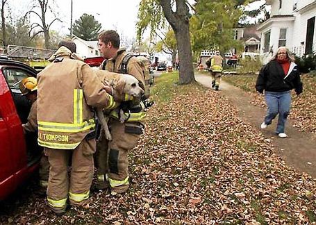 Город Халл, Великобритания. Во время пожара собака оказалась запертой в задымленной комнате, в то время как спасатели вытаскивали из дома ее хозяйку. Как только пожарные узнали о бедном животном, они залезли в дом и вытащили собаку. Она была без сознания.