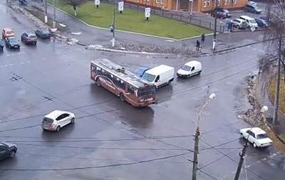 Хмельницкий шокирован поведением водителя троллейбуса, который решил проехаться через оживленный перекресток, над которым отсутствуют контактные провода.
