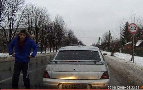 В Сети появилось забавное видео от 8 декабря, которое рассказывает о том, как поучили нарушителя Правил дорожного движения в Краматорске.
