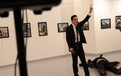 По словам корреспондента Hurriyet, который стал свидетелем атаки, мужчина сначала выстрелил в воздух, затем прокричал несколько фраз в поддержку исламистов и слова "Это месть за Алеппо", а затем выстрелил в 62-летнего Карлова.