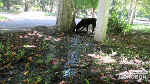 "Судя по качеству - вода питьевая, поскольку рядом находящиеся бесхозные животные, с удовольствием ее пьют", - отмечает местное издание "Деловой Славянск".