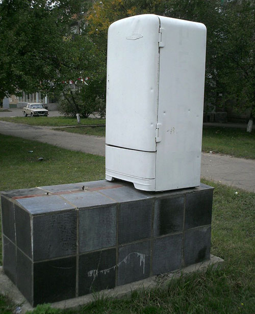 Как следует из видеозаписи, водитель легкового автомобиля врезался в конструкцию на обочине дороги, где когда-то в рекламных целях был установлен холодильник. Тогда это выглядело так: