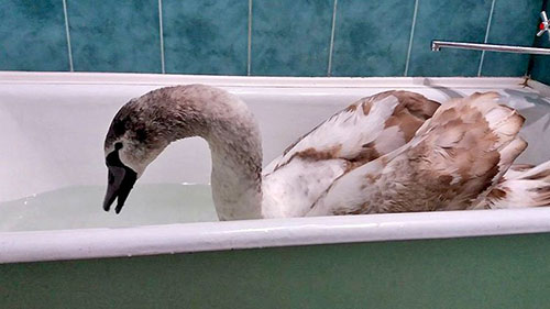 Сейчас, по словам женщины, птица живет в ее квартире и хорошо себя чувствует. Поскольку у лебедя была травма крыла, летать он больше не сможет. Птицу планируют направить в экопарк в Харькове.