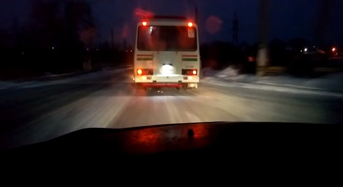 Водитель частного транспорта увидел, что следующий перед ними автобус с пассажирами явно неисправен: под корпусом транспорта волочился по земле какой-то предмет, искрящий прямо на газовые баллоны. При этом водитель автобуса явно знал о неисправности, так как ехал, включив аварийные сигналы. Но - все равно вез пассажиров.
