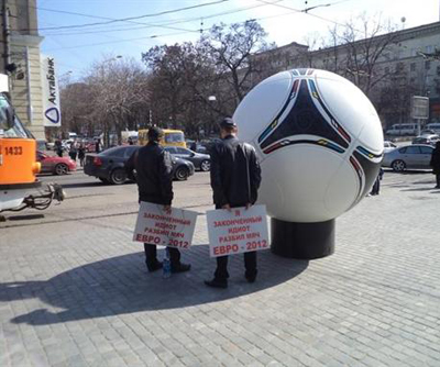 В Днепропетровске двух молодых людей, на днях разбивших декоративный мяч Евро-2012, наказали очень необычным способом. Их воспитывали стыдом!