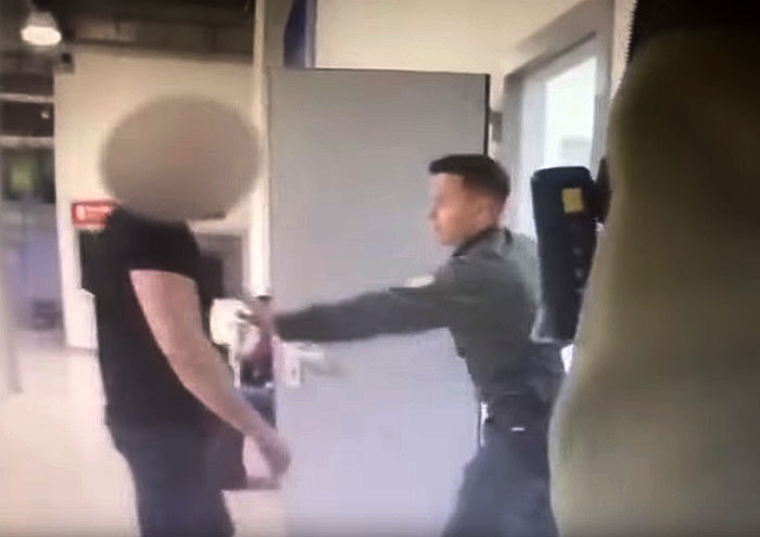 Пресс-служба Государственной пограничной службы опубликовала видео, снятое 8 мая в столичном аэропорту "Жуляны", где пьяного пассажира, прибывшего в страну из России, отказались впускать в Украину.по причине его неадекватного поведения.