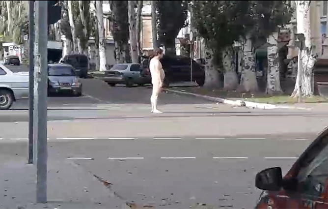 Электронные СМИ Славянска сообщают о появлении на перекрестке улиц Банковской и Шевченко совершенно голого мужчины, который изображает из себя "регулировщика".