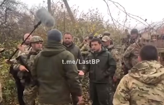 Сегодня, 26 октября, Владимир Зеленский неожиданно появился в Золотом, на позициях украинских добровольцев. Предполагалось, что он хотел поговорить с бойцами о предстоящем разведении сил и ситуации на фронте в целом.