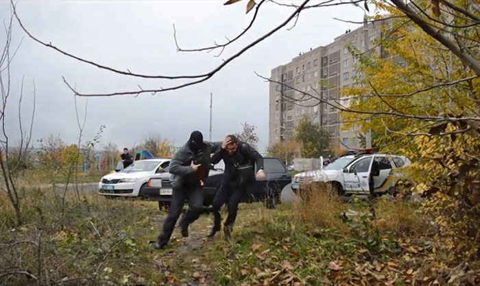 В Сети, со ссылкой на Главное управление национальной полиции в Донецкой области, появилось видео, рассказывающее о том, что "25 октября сотрудники Краматорского отдела полиции, совместно с сотрудниками Патрульной полиции городов Краматорск и Славянск, провели отработку спецоперации по задержанию вооруженных злоумышленников и освобождению заложников".