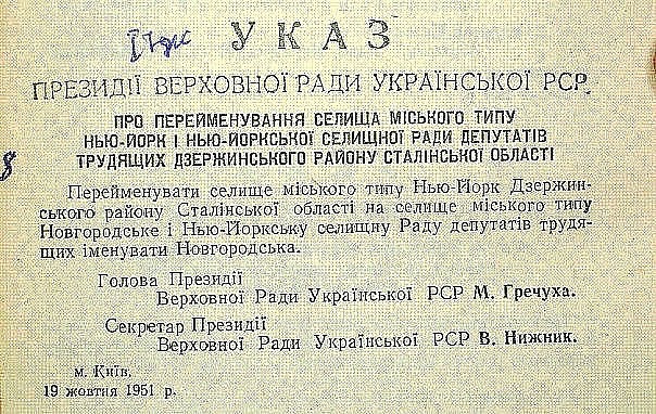Люди недовольны принятым накануне решением депутатами поселкового совета о переименовании поселка в Нью-Йорк. Такое название населенный пункт имел до 1951 года.